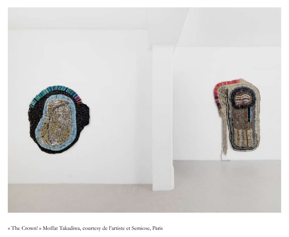 Chez Semiose, Moffat Takadiwa présente « The Crown! », des œuvres monumentales composées de matériaux recyclés, transformés en véritables tapisseries contemporaines aux résonances sociales et politiques. L’exposition « Valis » de Paul Gondry complète cette visite avec des peintures énigmatiques, peuplées de présences spectrales et d’atmosphères oniriques.