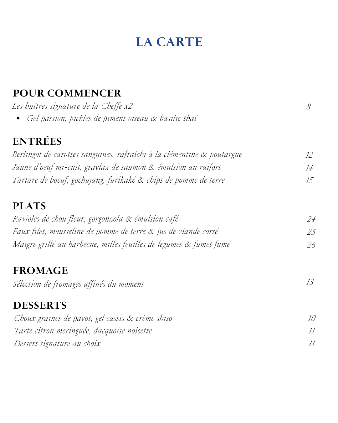 Entièrement rénové en 2025, le lieu a su préserver son âme tout en affirmant une esthétique contemporaine élégante. C’est ici que s’exprime la cuisine précise, audacieuse et profondément personnelle de la cheffe Sarika Sor.